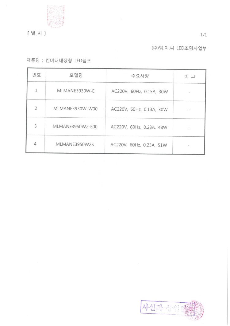 인증 | K마크인증서(컨버터내장형 LED램프)