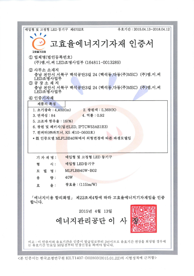 인증 | 매입형-및-고정형-LED-등기구-제-6702호-MLFLBB40W-B02