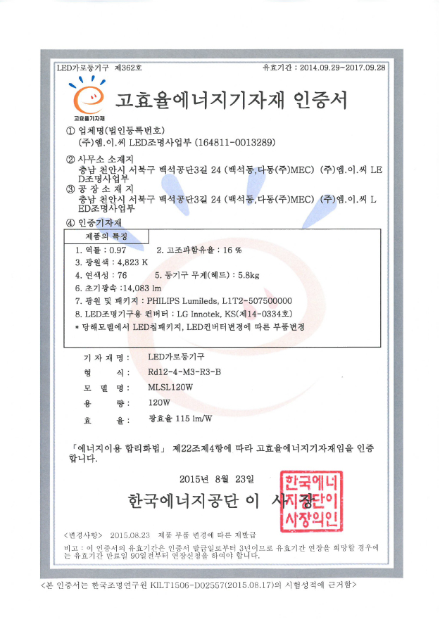 인증 | LED-가로등기구-제-362호-MLSL120W