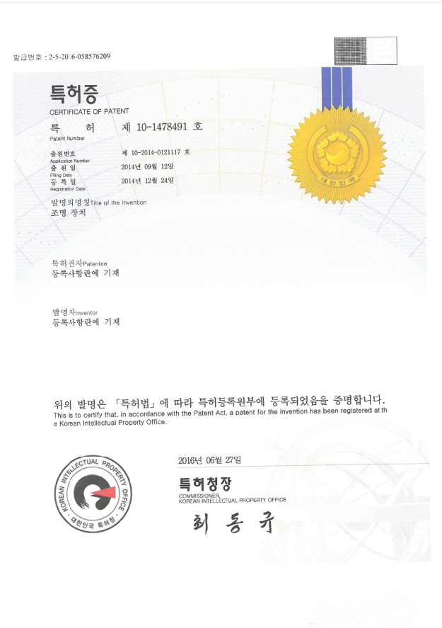 특허 | 특허증-조명장치 페이지 정보 작성자 최고관리자 작성일17-01-09 20:23 조회1,903회 댓글0건 관련링크 이전글 검색 목록 본문 가로등 하트형 등기구_특허증 이전글 검색 목록