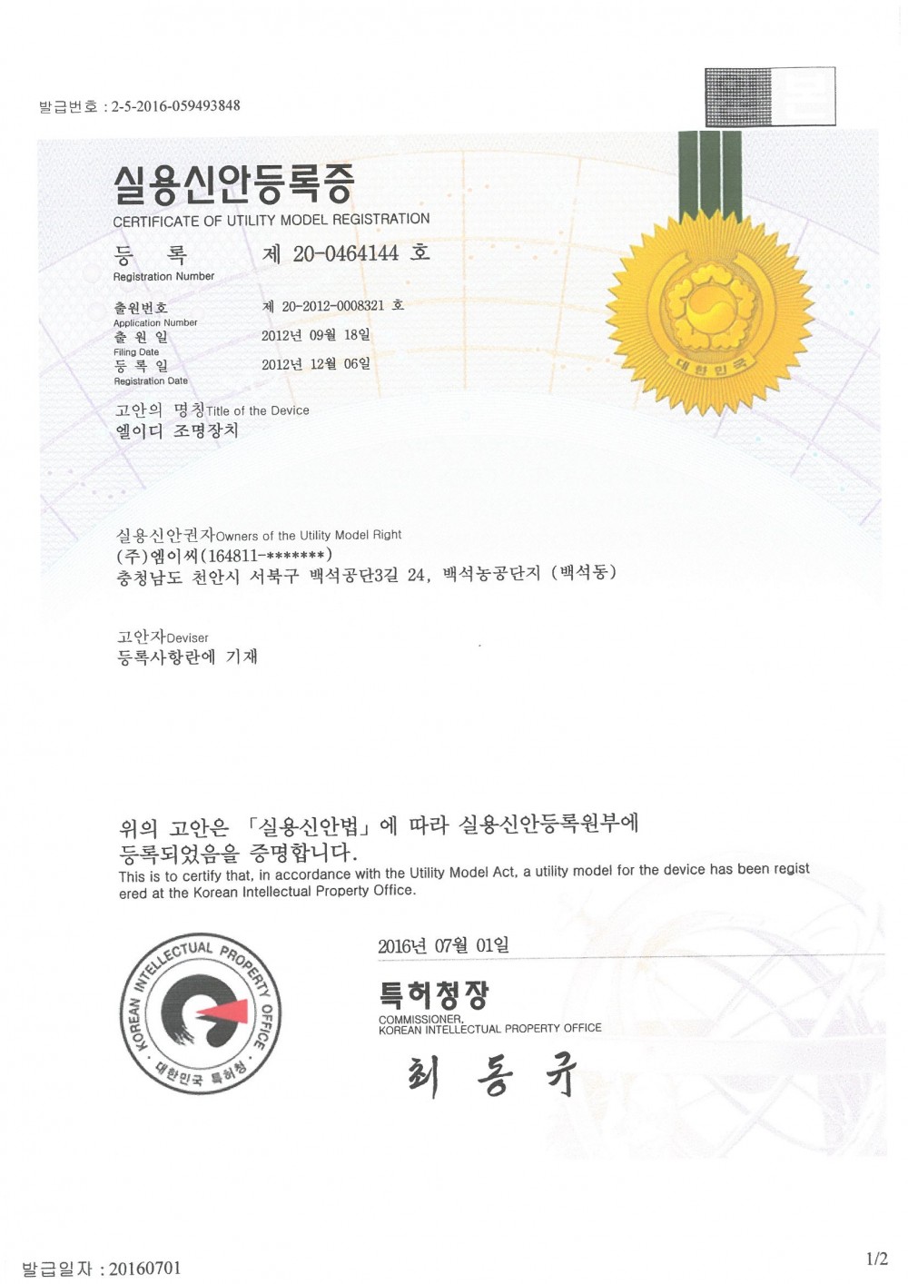특허 | 실용신안등록증-엘이디조명장치 페이지 정보 작성자 엠이씨 작성일17-01-31 17:06 조회3,346회 댓글0건 관련링크 이전글 다음글 목록 본문 실용신안등록증-엘이디조명장치_맨하튼Ⅱ 이전글 다음글 목록